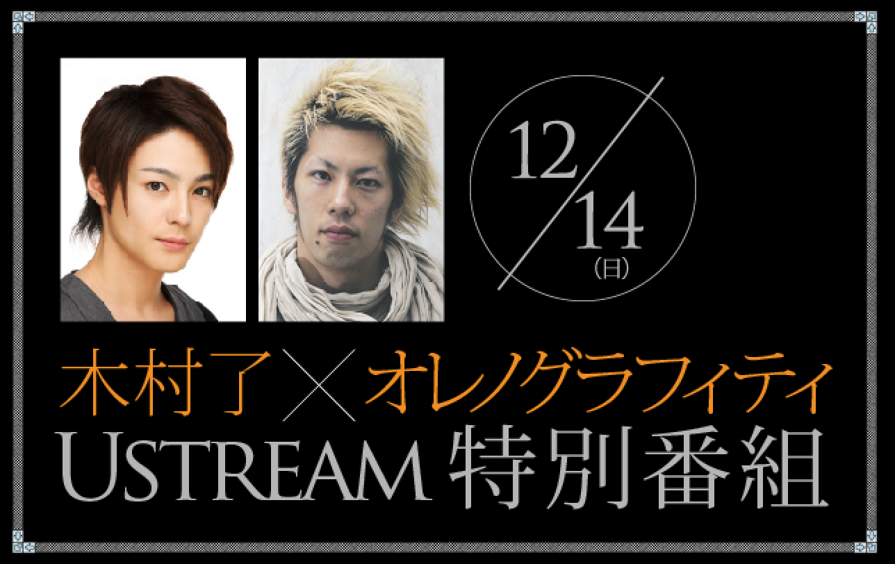 12月14日(日)、Ustream特別番組「木村了×オレノグラフィティSP」の放送が決定しました!